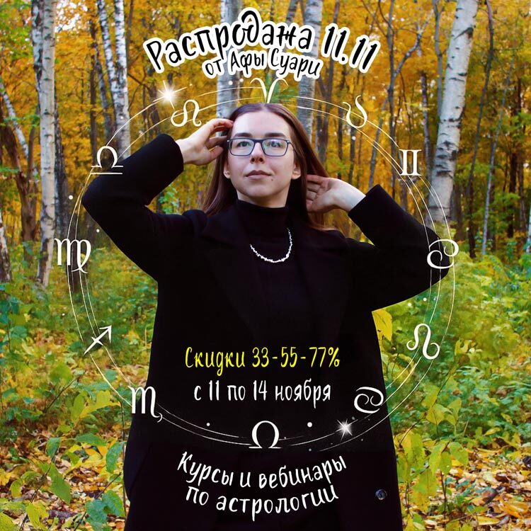 🍁🎁✨ Распродажа 11.11 продлится с 11 по 14 ноября! Уникальные скидки на курсы и вебинары по астрологии: 33%, 55%, 77%. Не пропустите, таких скидок в другие акции уже не будет. А на январь запланирована индексация, так что такие цены в принципе больше не повторятся!