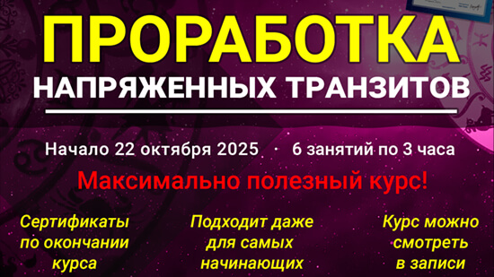 Приглашаю вас на новый курс «Проработка напряженных транзитов». В этом посте расскажу подробнее, о чем этот курс и чем он может быть вам полезен.