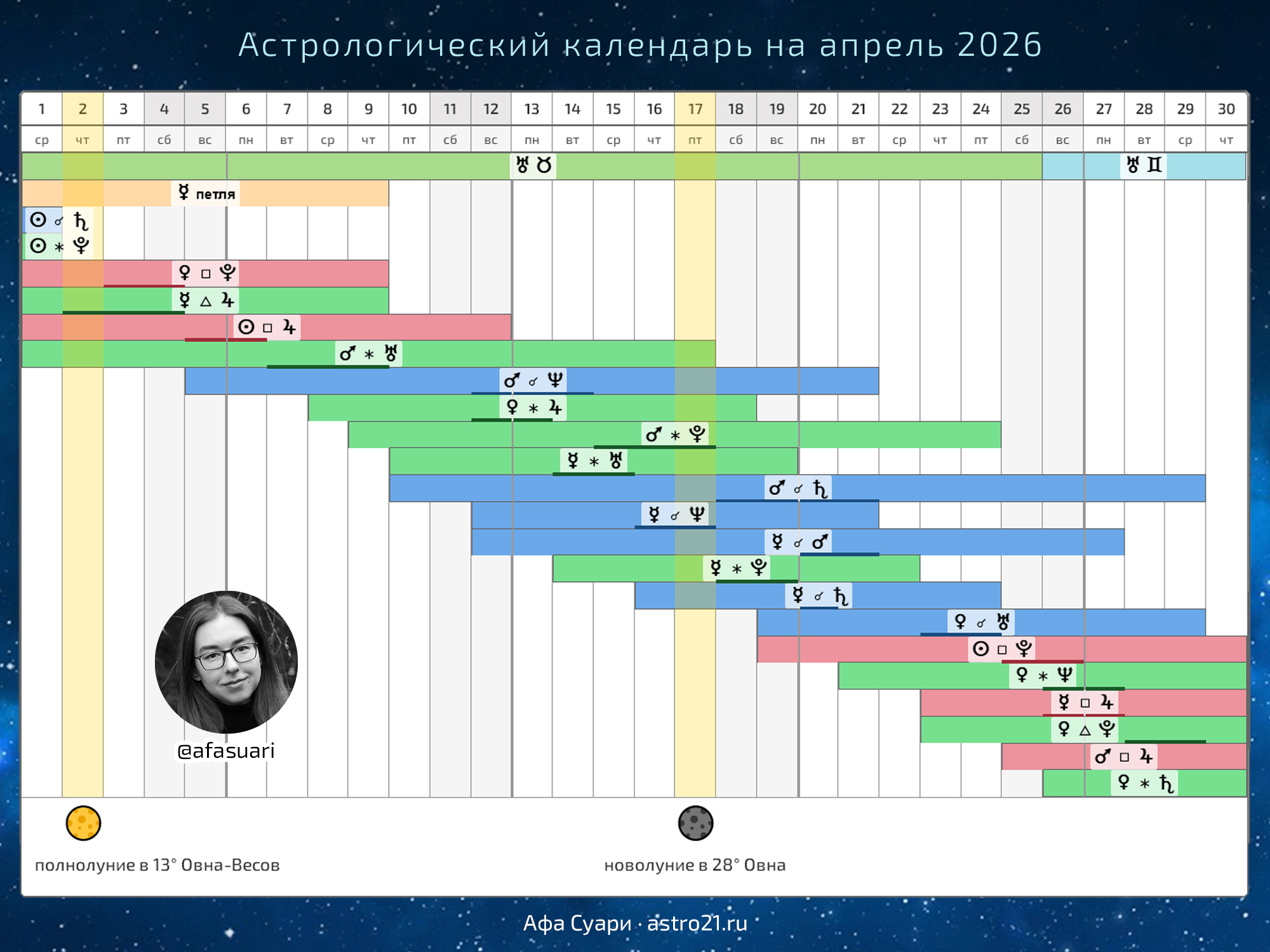 Астрологический календарь на апрель 2026 от Афы Суари @afasuari