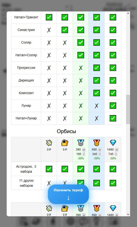 Что же входит в каждый тариф? Давайте я здесь частично это продублирую, но в Астродоксе список более полный и ориентироваться в нем проще, потому что он в табличном виде. Но коротко: