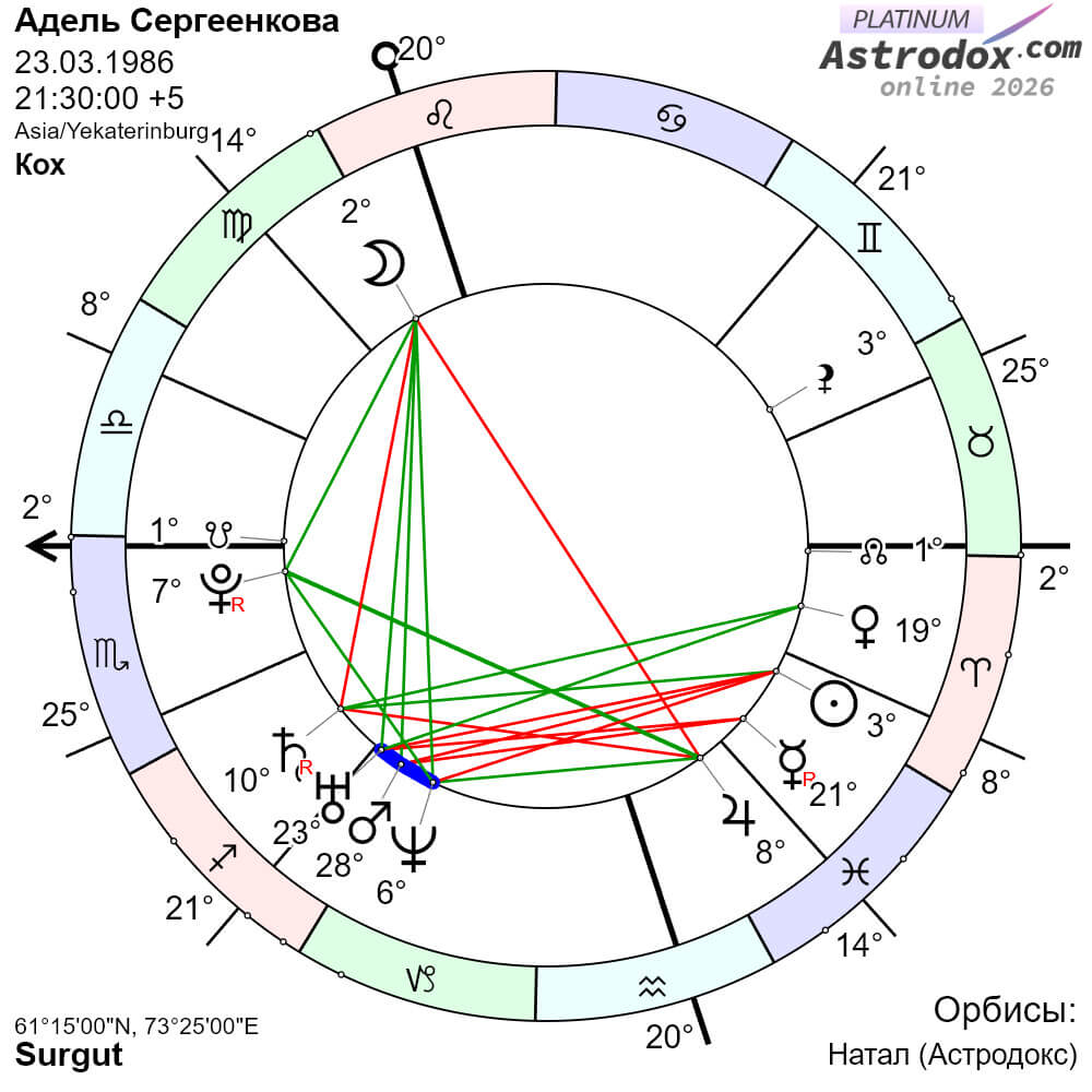 Сергеенкова Адель; 23.03.1986; 21:30; +5; Surgut, Tjumenskaja obl., Russia; 61N14; 73E20; —; ;