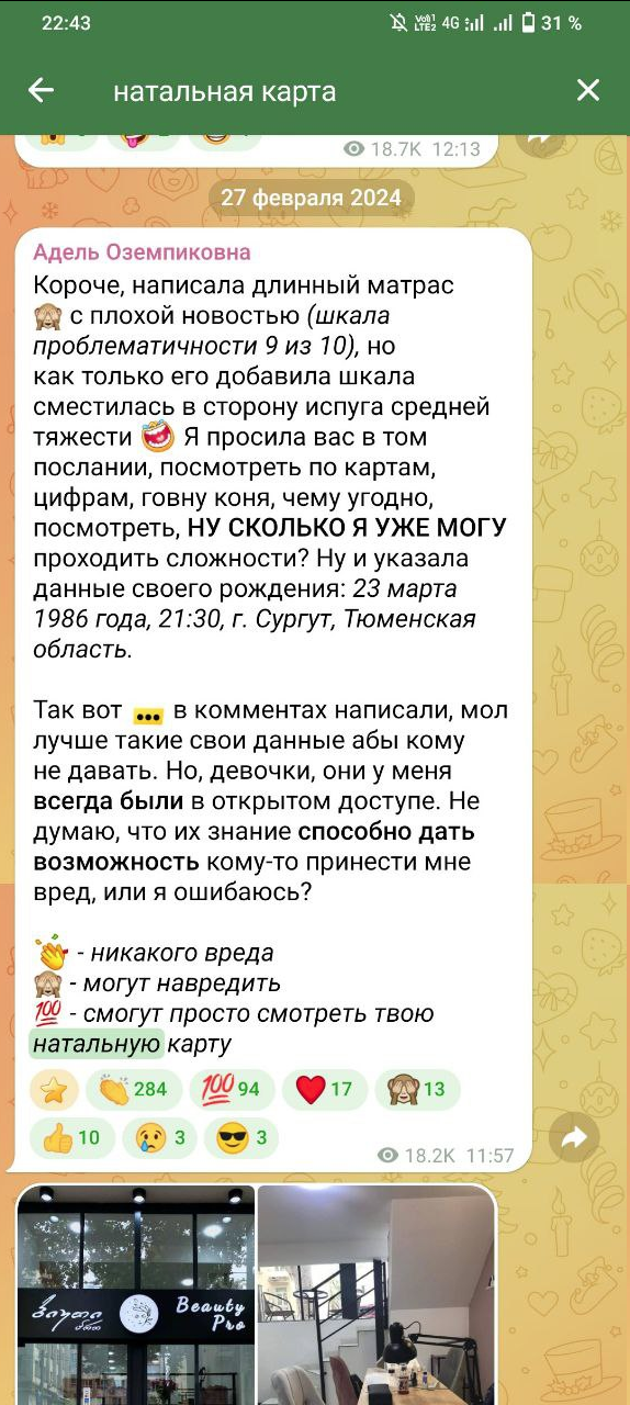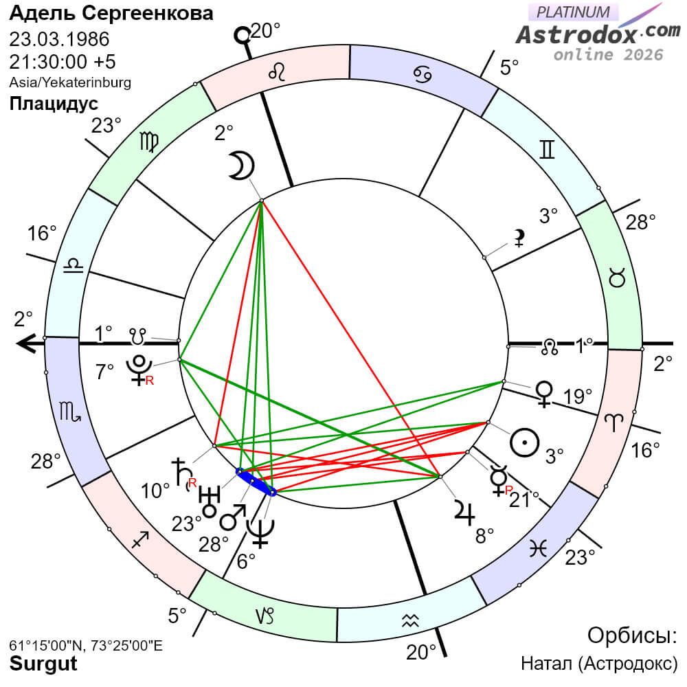 Адель в своем блоге в ТГ сама сообщила свое время рождения — 21:30: