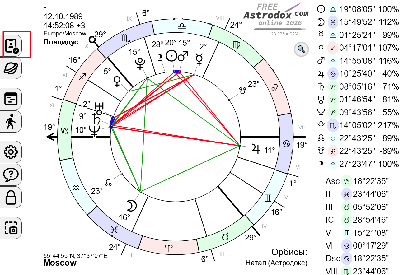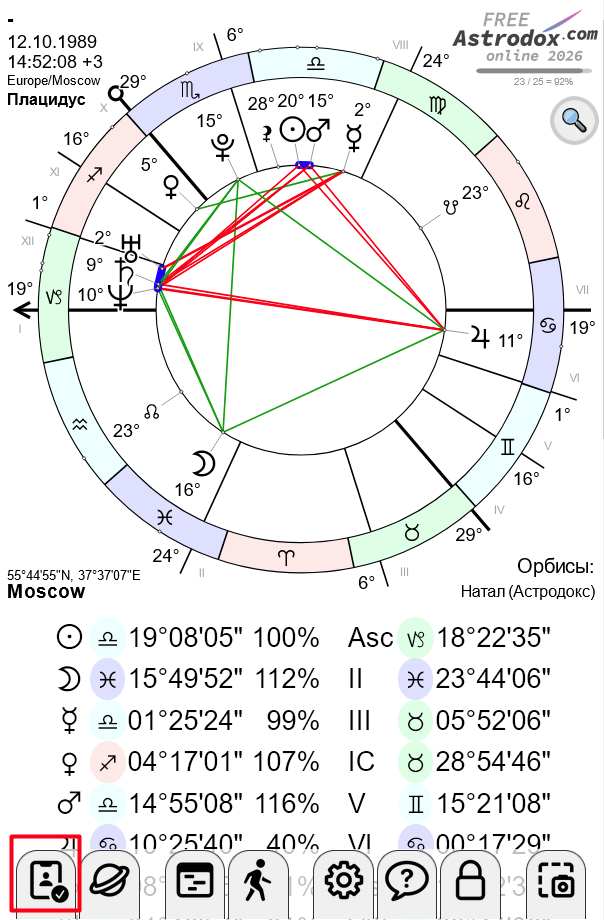 - Постройте натальную карту кого-нибудь из друзей или близких, у кого известно время рождения.